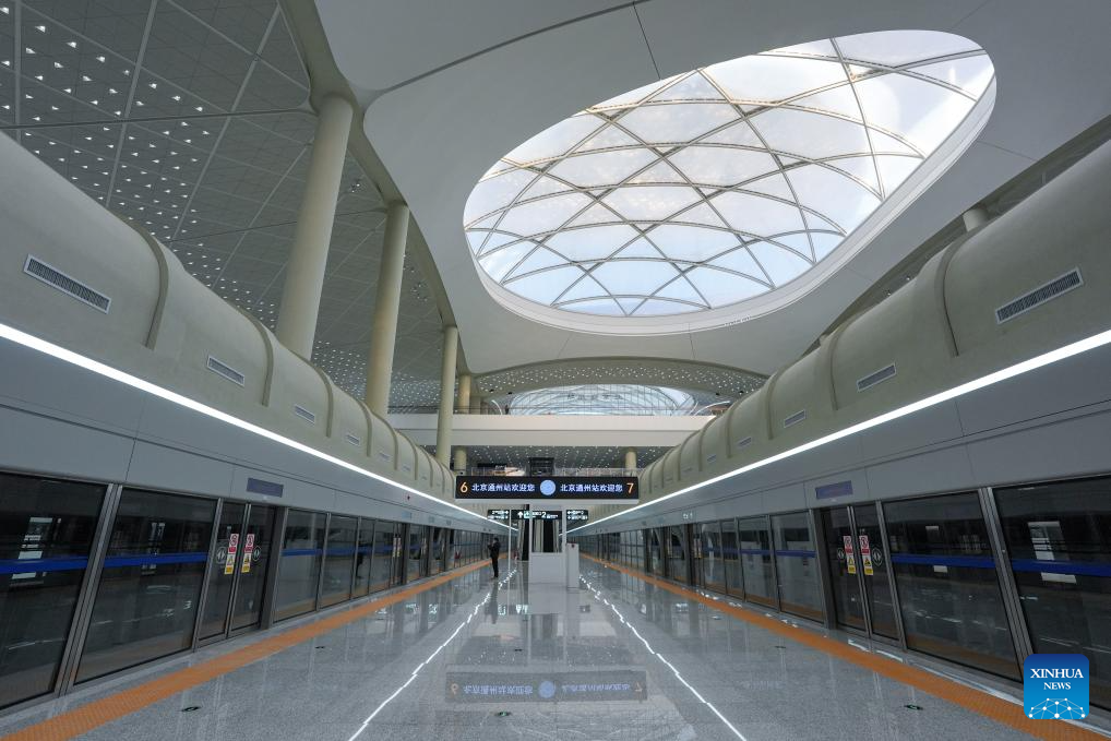 This photo taken on Dec. 25, 2025 shows a platform at the Beijing Tongzhou Railway Station in Beijing, capital of China. The railway station, located in the comprehensive transportation hub of Beijing's sub-center Tongzhou District, will be officially put into operation on Dec. 30. (Xinhua/Ju Huanzong)