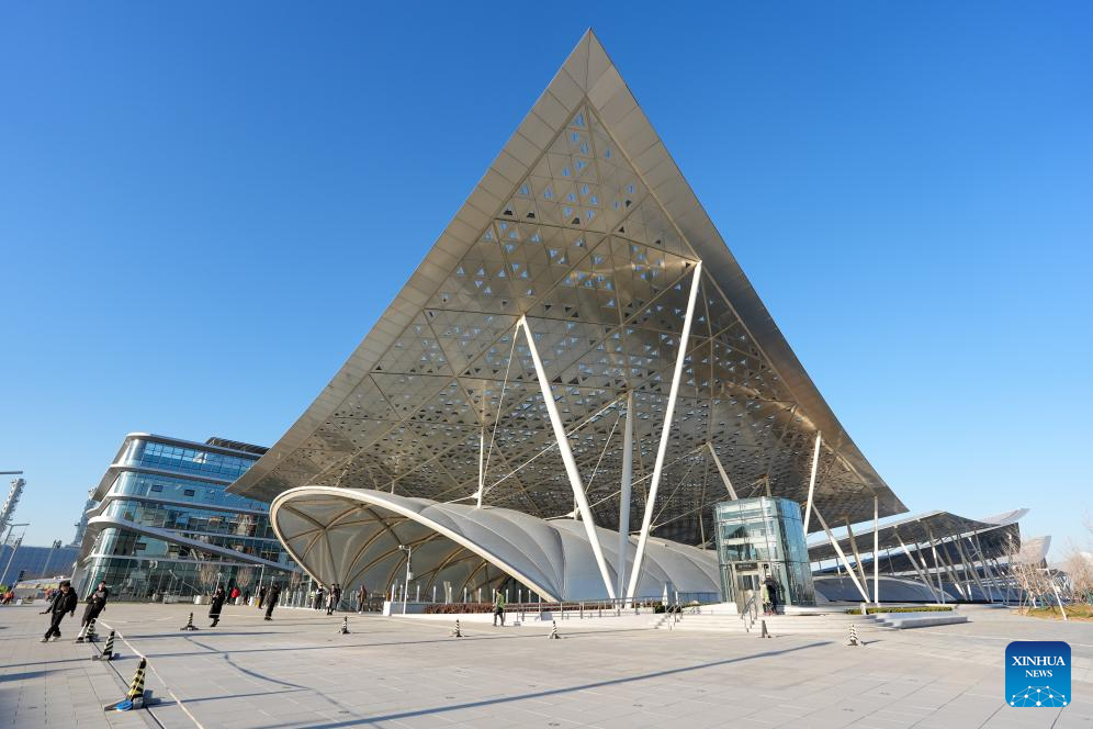 This photo taken on Dec. 25, 2025 shows an exterior view of the Beijing Tongzhou Railway Station in Beijing, capital of China. The railway station, located in the comprehensive transportation hub of Beijing's sub-center Tongzhou District, will be officially put into operation on Dec. 30. (Xinhua/Ju Huanzong)