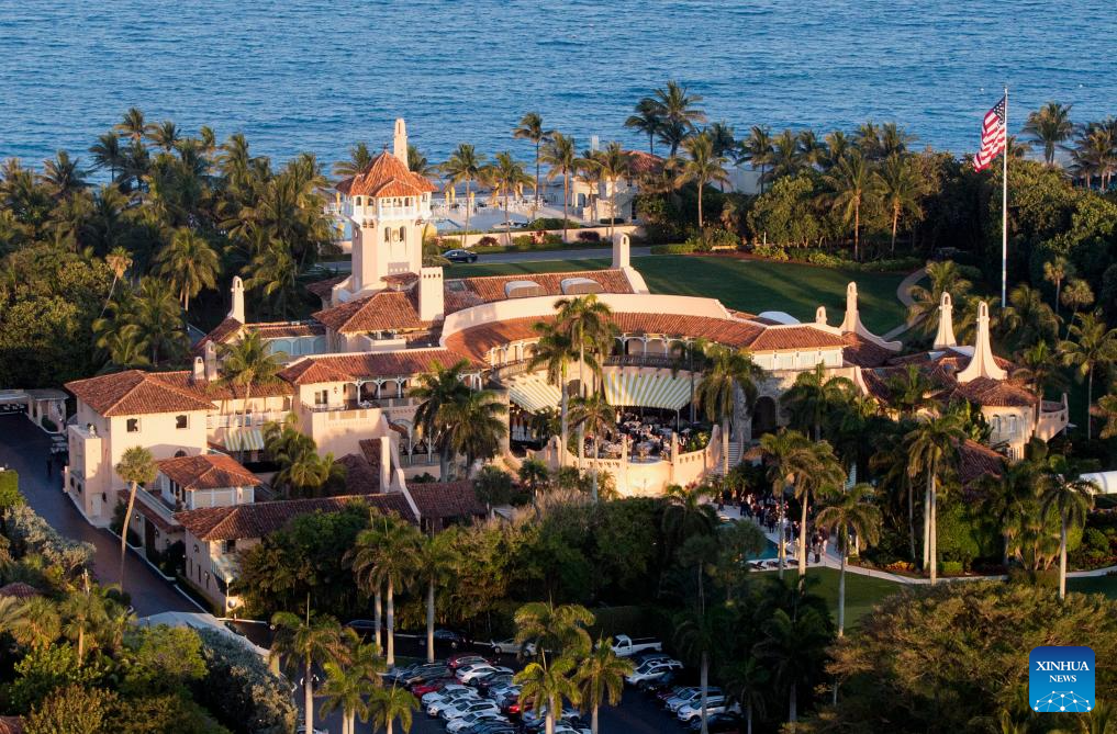 This file photo shows a view of the Mar-a-Lago estate in Palm Beach, Florida, the United States. U.S. President Donald Trump and Ukrainian President Volodymyr Zelensky met in Florida on Sunday on the latest draft of a peace plan aimed at ending the Ukraine crisis. (Xinhua)