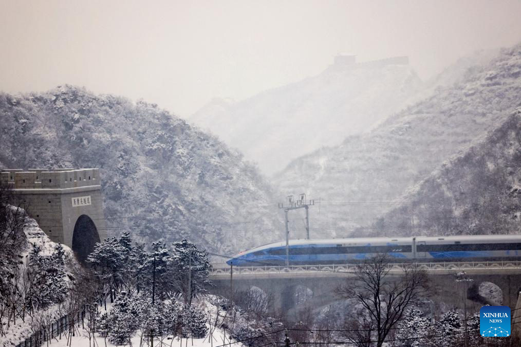 A bullet train of Beijing-Zhangjiakou high-speed railway passes through Juyongguan Tunnel and heads for Taizicheng from Beijing, Jan. 21, 2022. China, home to the world's largest high-speed rail network, has expanded its total operational mileage beyond 50,000 kilometers with the launch of a new high-speed line.