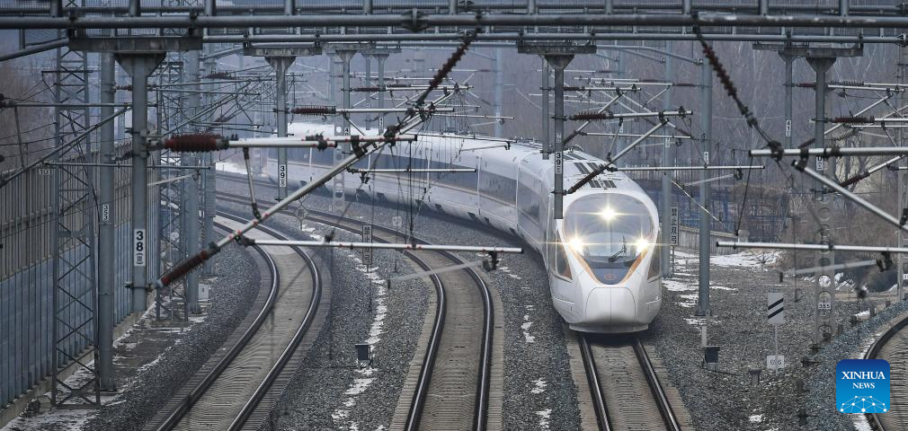 A Fuxing train runs on the Beijing-Harbin high-speed railway in Shenyang, northeast China's Liaoning Province, Jan. 22, 2021. The Beijing-Harbin high-speed railway opened to traffic on the same day. China, home to the world's largest high-speed rail network, has expanded its total operational mileage beyond 50,000 kilometers with the launch of a new high-speed line.