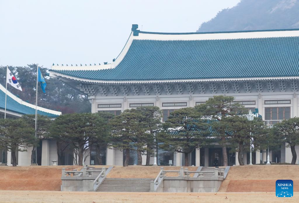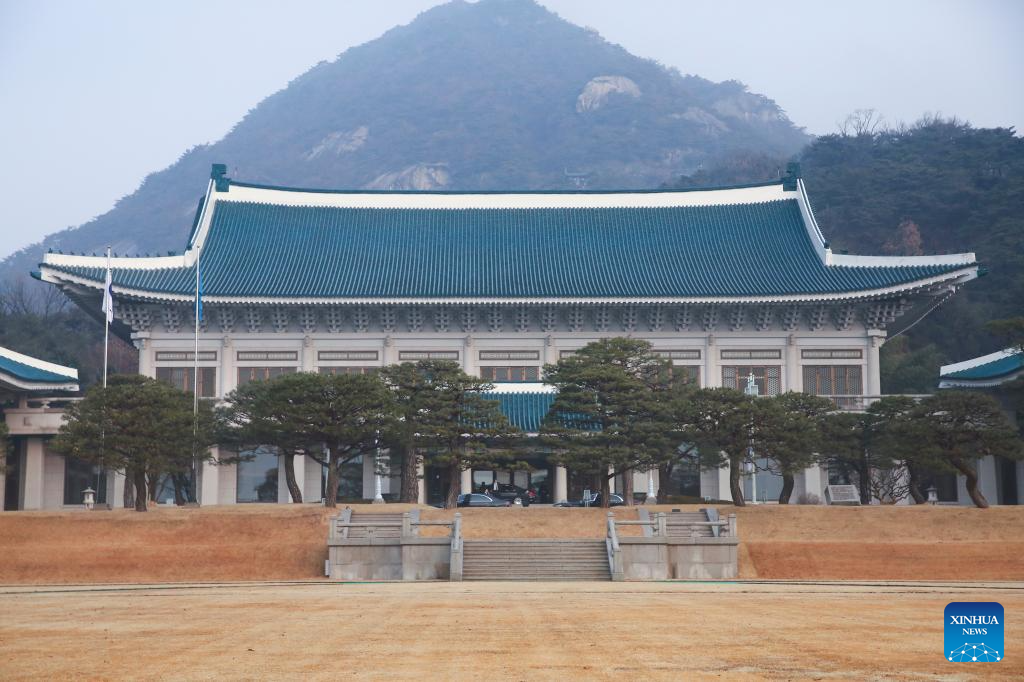 SEOUL, Dec. 29 (Xinhua) -- At midnight Sunday local time, the "Phoenix Flag," a symbol of South Korea's presidency, was raised at Cheong Wa Dae, which is widely known as the Blue House, after a hiatus of three years and seven months.