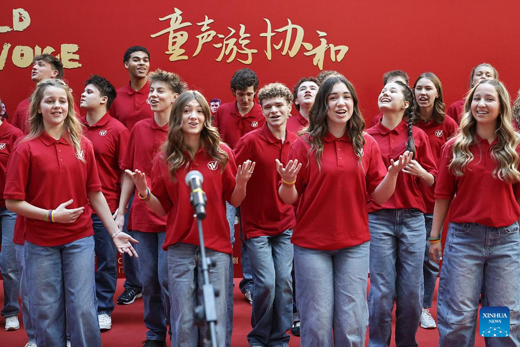 One Voice Children's Choir from the United States performs at the Peking Union Medical College Hospital (PUMCH) in Beijing, capital of China, Dec. 31, 2025. Fifty-six young performers from One Voice Children's Choir along with invited musicians gave a performance at the hospital on Wednesday. (Xinhua/Zhang Yuwei)