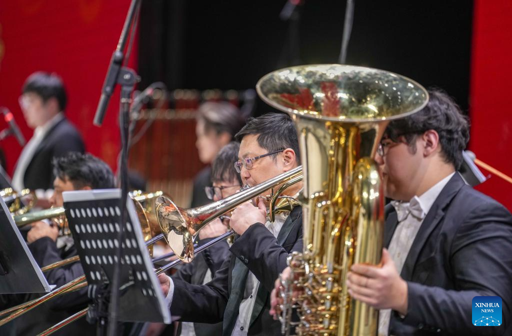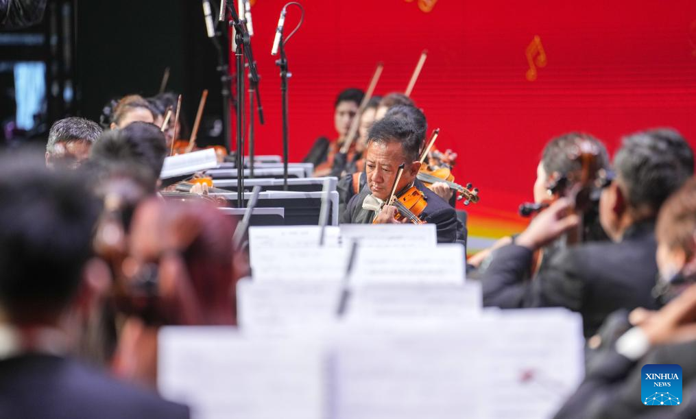 Musicians perform at a New Year concert held at Xizang grand theater in Lhasa, southwest China's Xizang Autonomous Region, on Dec. 30, 2025. (Xinhua/Jigme Dorje)