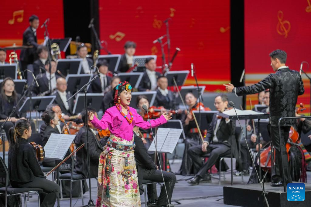 Artists perform at a New Year concert held at Xizang grand theater in Lhasa, southwest China's Xizang Autonomous Region, on Dec. 30, 2025. (Xinhua/Jigme Dorje)