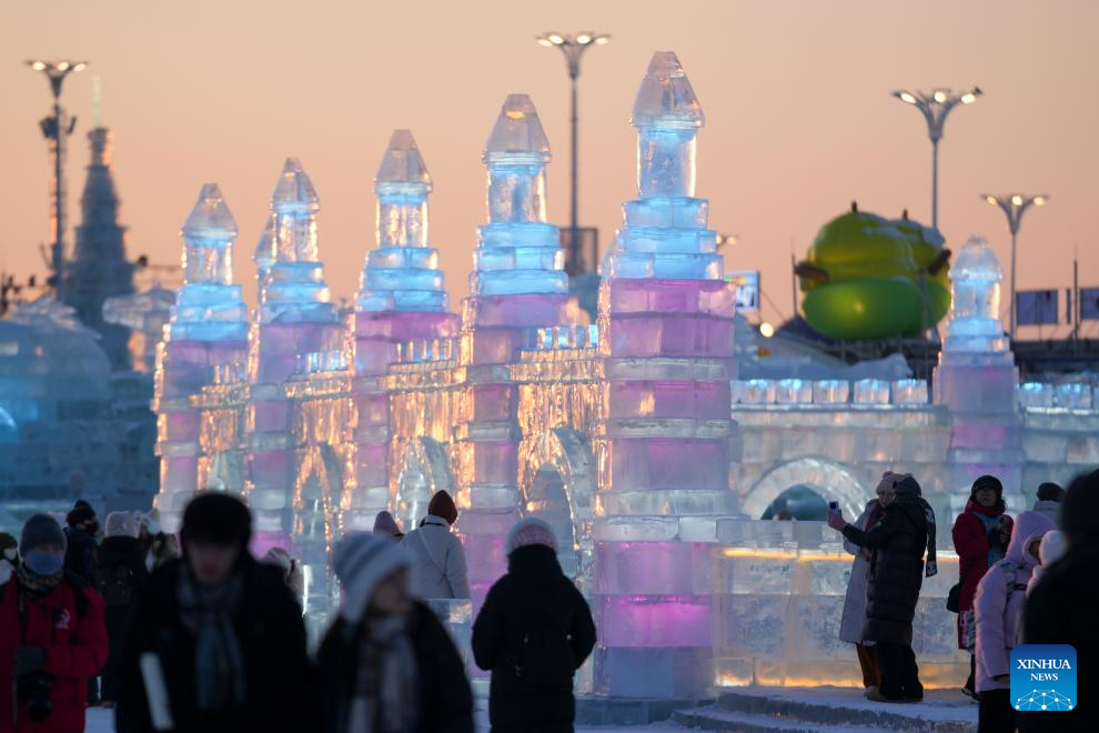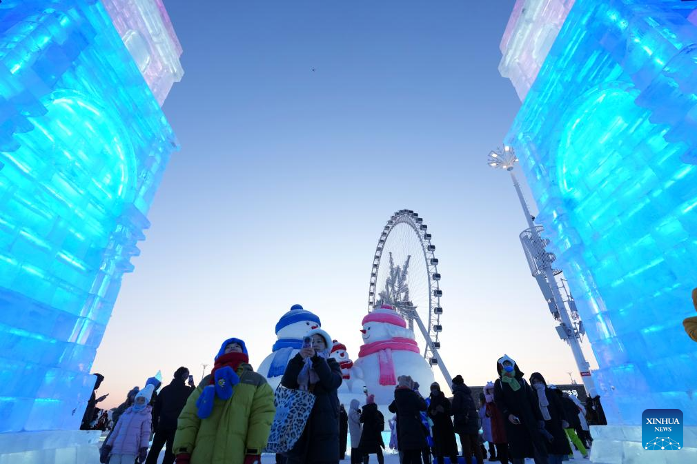 People visit the Harbin Ice-Snow World in Harbin, northeast China's Heilongjiang Province, Jan. 5, 2026. The 42nd Harbin International Ice and Snow Festival kicked off at the Harbin Ice-Snow World here on Monday. (Xinhua/Wang Song)