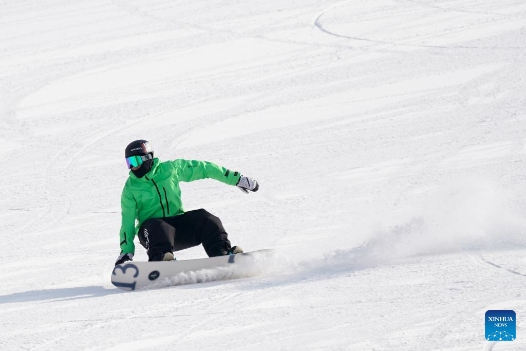 A tourist has fun at the Guangwu international ski resort in Shanyin County of Shuozhou, north China's Shanxi Province, Jan. 7, 2026. Shanyin County has been leveraging its geographical advantage to develop ice and snow-themed tourism, which is now a new driver for the local economy. (Xinhua/Yang Chenguang)