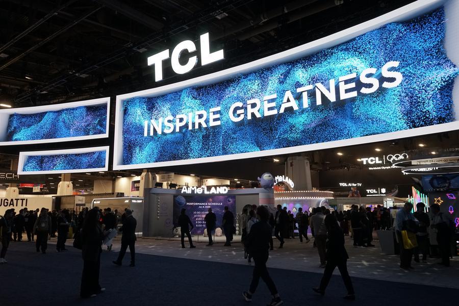 People visit the exhibition area of TCL during the 2026 Consumer Electronics Show (CES) in Las Vegas, the United States, Jan. 6, 2026. (Photo by Zeng Hui/Xinhua)
