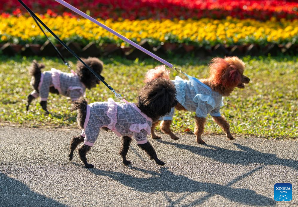 Citizens walk dogs at a park in Qionghai City, south China's Hainan Province, Jan. 9, 2026. (Photo by Meng Zhongde/Xinhua)