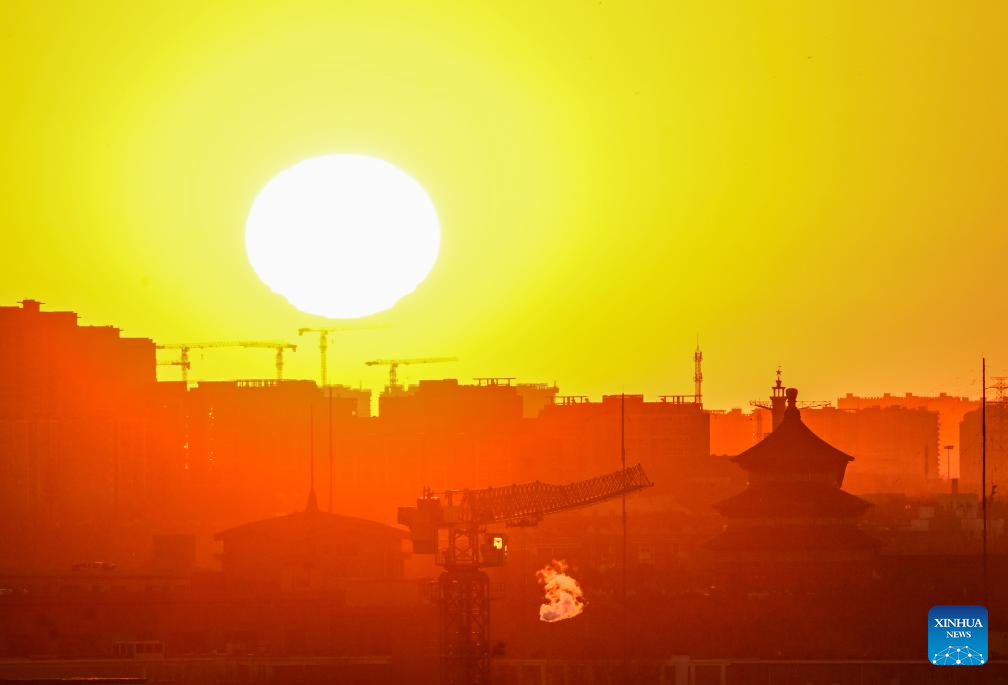 This photo taken on Jan. 11, 2026 shows a view of the sunrise in Beijing, capital of China. (Xinhua/Chen Yehua)