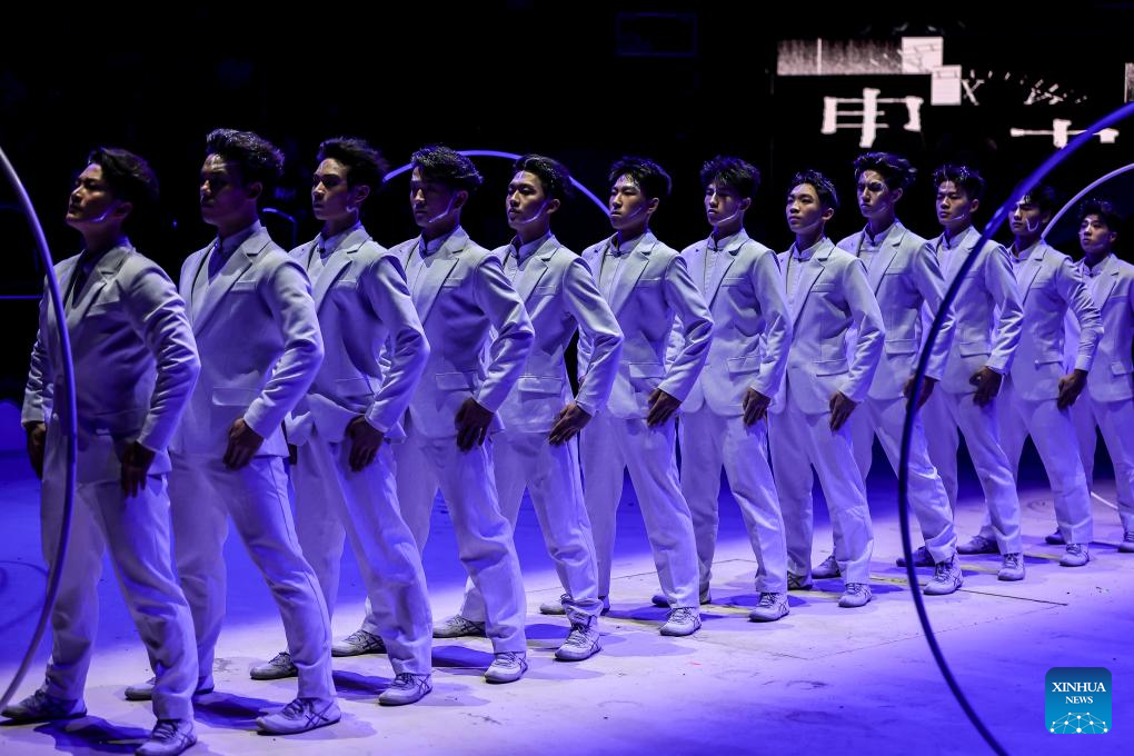Members of the China National Acrobatic Troupe perform a hoop-diving act during the gala show of the 16th Budapest International Circus Festival in Budapest, Hungary, Jan. 12, 2026. The China National Acrobatic Troupe claimed the Grand Prix at the Budapest International Circus Festival. (Photo by David Balogh/Xinhua)