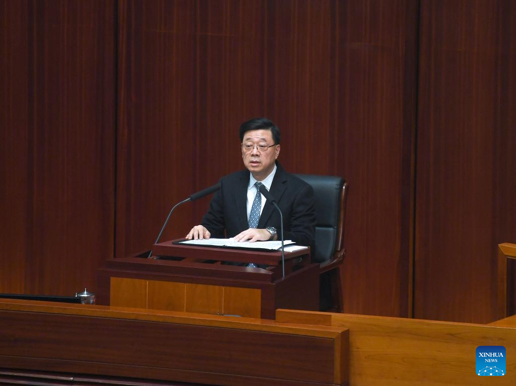John Lee, chief executive of the Hong Kong Special Administrative Region (HKSAR), attends the first meeting of the eighth-term Legislative Council in Hong Kong, south China, Jan. 14, 2026. (Xinhua/Chen Duo)