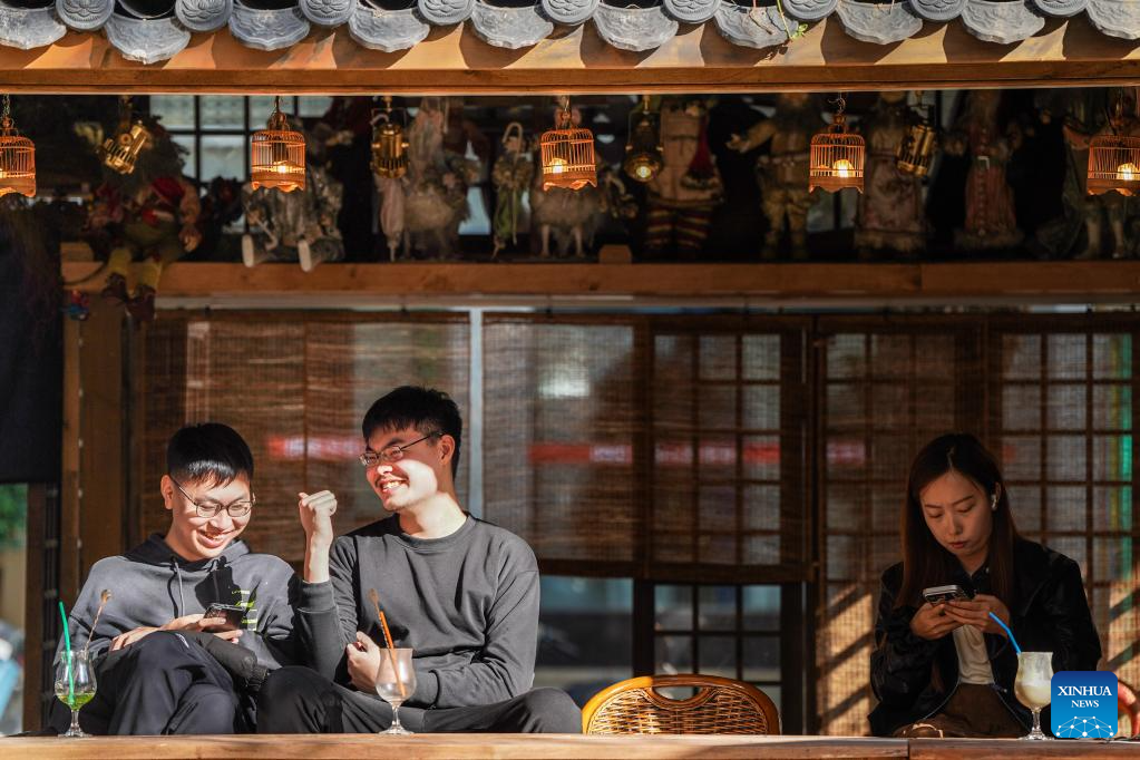 Tourists take a rest at the Cuihu Lake coffee culture center near Cuihu Lake in Kunming, southwest China's Yunnan Province, Jan. 13, 2026. Cuihu Lake is both a signature landscape of Kunming and a testament to the city's memories, surrounded by historical legacies such as the former sites of the National Southwestern Associated University and Yunnan Military Academy.