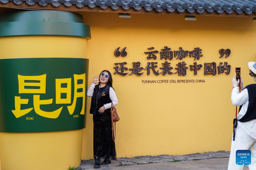 A tourist poses for photo at the Cuihu Lake coffee culture center near Cuihu Lake in Kunming, southwest China's Yunnan Province, Jan. 13, 2026. Cuihu Lake is both a signature landscape of Kunming and a testament to the city's memories, surrounded by historical legacies such as the former sites of the National Southwestern Associated University and Yunnan Military Academy.