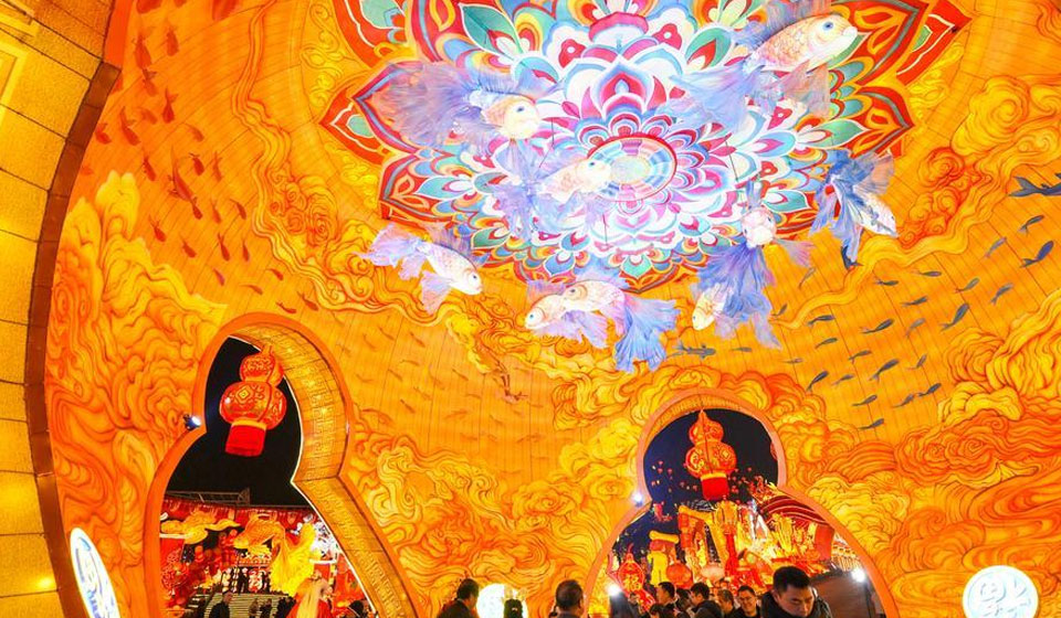 Tourists visit the 32nd Zigong International Dinosaur Lantern Show in Zigong, southwest China's Sichuan Province, Jan. 23, 2026. (Xinhua/Wang Xi)