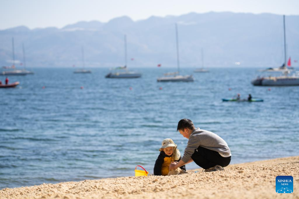 Tourists visit the Fuxian Lake in Yuxi City, southwest China's Yunnan Province, Jan. 27, 2026. (Xinhua/Gao Yongwei)