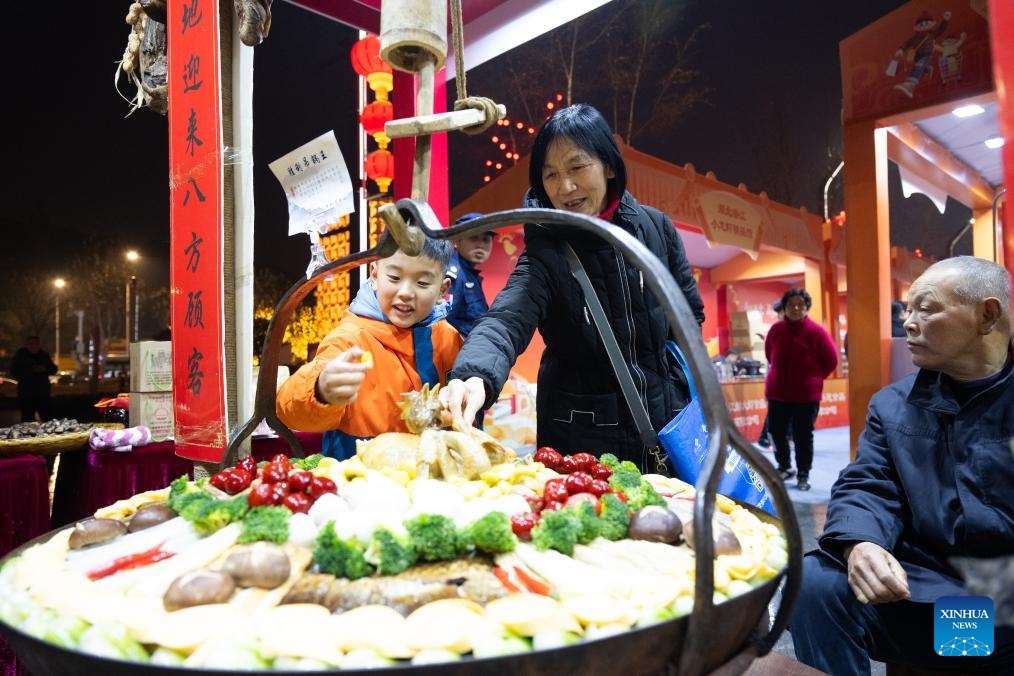 People learn about a specialty cuisine at an event themed on the "Hubei New Spring International Consumption Season" in Wuhan, central China's Hubei Province, Feb. 5, 2026. The "Hubei New Spring International Consumption Season" kicked off here on Thursday, attempting to create diverse consumption scenarios for the upcoming Spring Festival. (Xinhua/Xiao Yijiu)