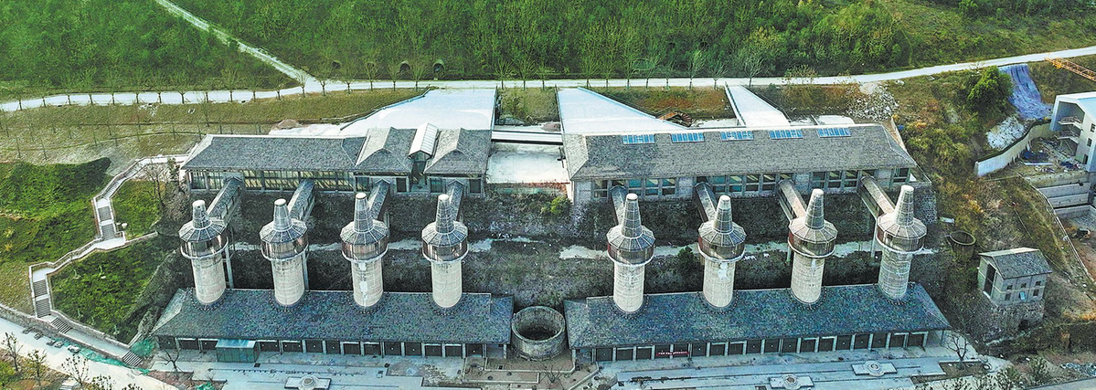 Eight kilns that were once used for roasting alum ore remain as iconic structures in the industrial heritage park. (Wang Hao/For China Daily)