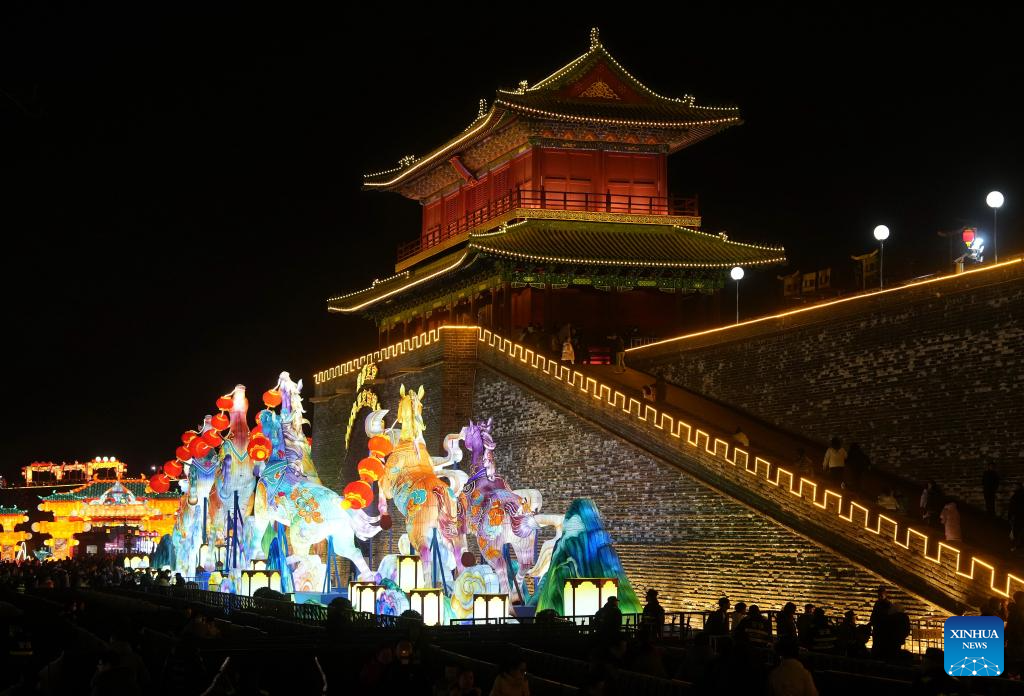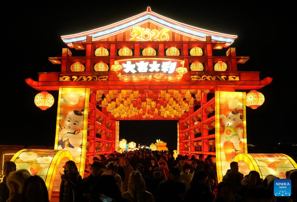 People enjoy lanterns at the Zhengding ancient city in Shijiazhuang, north China's Hebei Province, Feb. 10, 2026. With the Spring Festival approaching, festive events are held across China to usher in the holiday. (Xinhua/Yang Shiyao)
