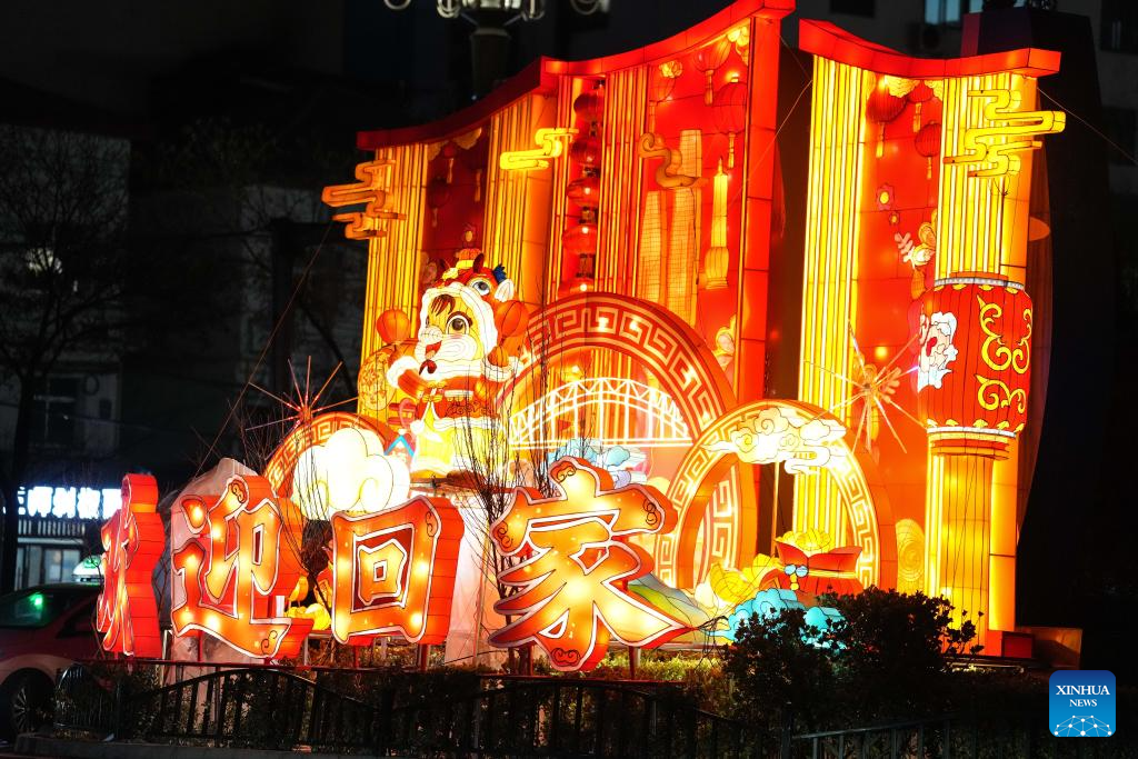 A giant set of lanterns for the upcoming Spring Festival is pictured in Lanzhou, northwest China's Gansu Province, Feb. 10, 2026. With the Spring Festival approaching, festive events are held across China to usher in the holiday. (Xinhua/Lang Bingbing)