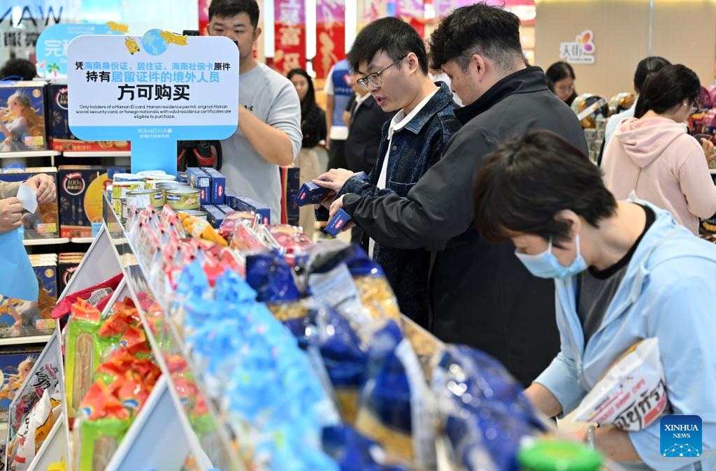 Each eligible resident is granted an annual duty-free shopping quota of 10,000 yuan (about 1,437 U.S. dollars), with no limit on the number of purchases. The policy covers daily necessities, including specified food and beverages, daily chemical products, household goods, and maternal and child supplies. (Xinhua/Zhang Liyun)