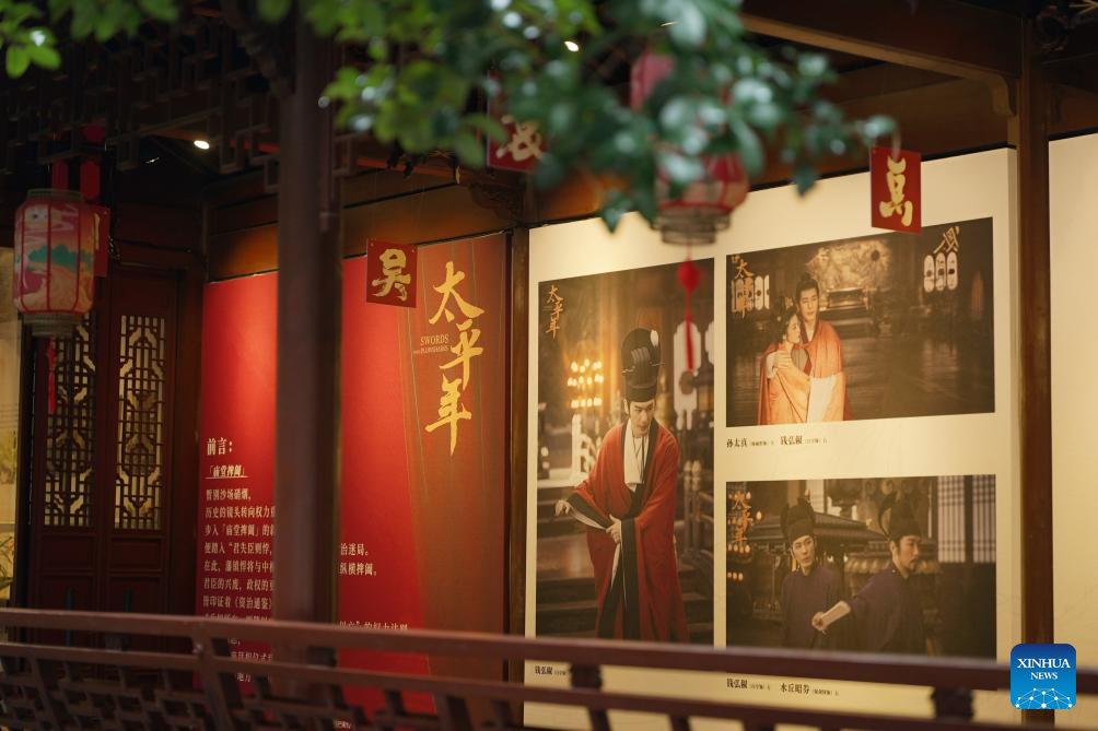 This photo taken on Dec. 31, 2025 shows an exhibition featuring the historical epic TV series "Swords into Plowshares" in Hangzhou, east China's Zhejiang Province. (Huace Group/Handout via Xinhua)