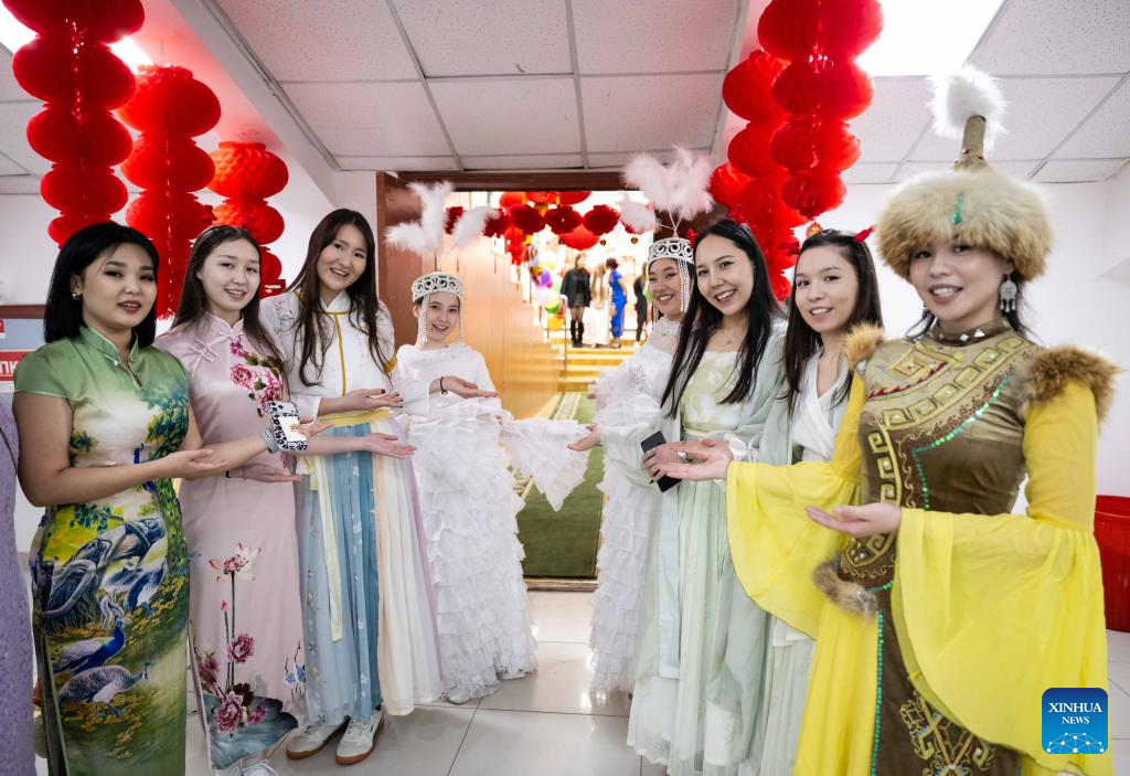 Students of Al-Farabi Kazakh National University perform a dance during a Chinese New Year cultural event in Almaty, Kazakhstan, Feb. 13, 2026. (Xinhua/Li Renzi)