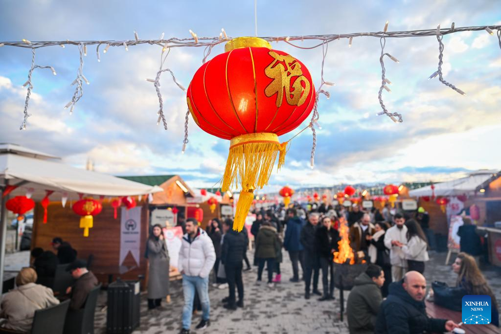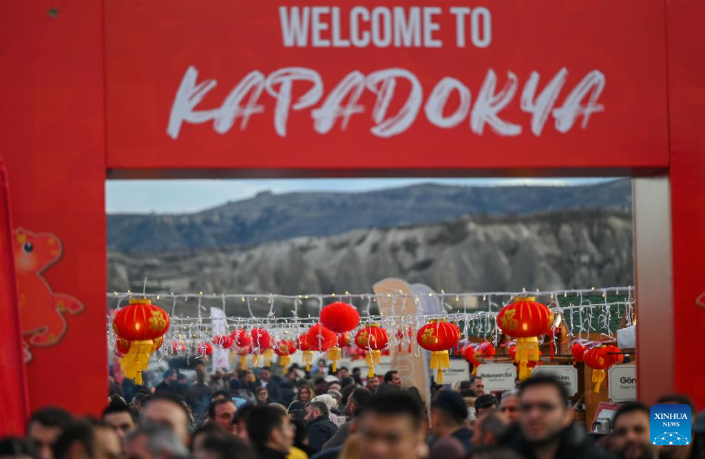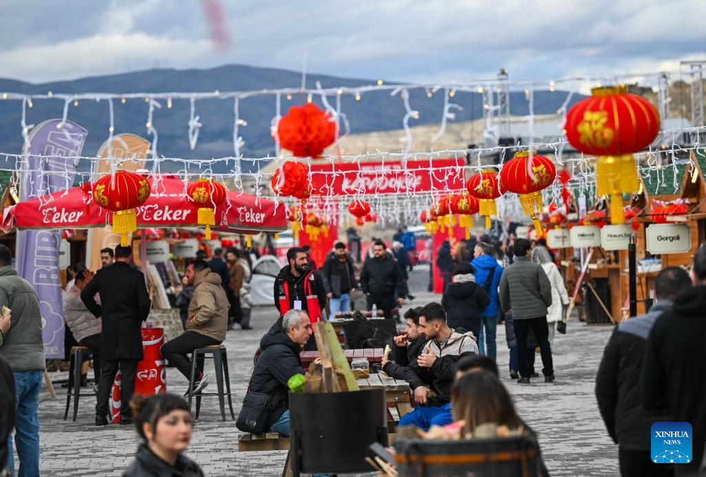 Tourists visit a food street decorated with Chinese festive elements during a Chinese Spring Festival celebration in Cappadocia, Trkiye, Feb. 14, 2026. (Xinhua/Liu Lei)