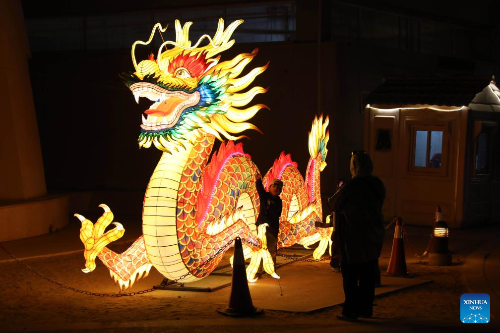 People visit a lantern festival to celebrate the upcoming Chinese New Year at the Family Park in Cairo, Egypt, on Feb. 14, 2026. (Xinhua/Ahmed Gomaa)