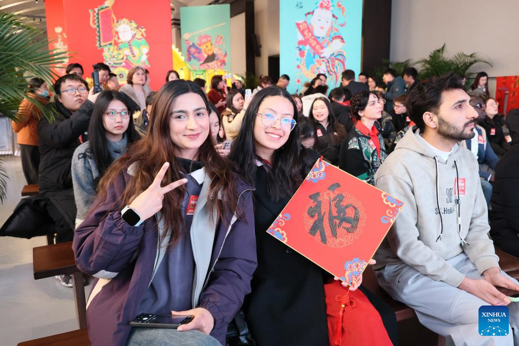 Foreign students participate in a Chinese New Year event at the Feng Jicai Museum at Tianjin University, north China's Tianjin Municipality, Feb. 10, 2026. (Xinhua)