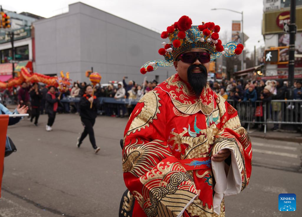A man in traditional costume attends a Chinese New Year parade in New York, the United States, Feb. 21, 2026. A parade was held here to celebrate the Chinese New Year on Saturday. (Xinhua/Zhang Fengguo)