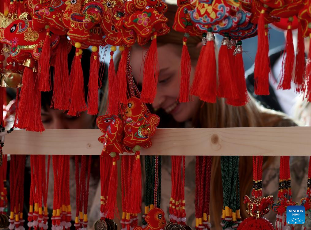 People take part in the Chinese New Year celebration at Trafalgar Square in London, Britain, on Feb. 22, 2026. (Xinhua/Li Ying)