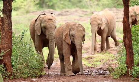 Elephants are pictured at the Elephant Orphanage in Nairobi, Kenya, on Feb. 26, 2026. The orphanage, located on the outskirts of Nairobi, treats and rescues elephant "orphans" in various nature reserves in Kenya. Through treatment and training, it gradually restores the ability of the elephants that were affected by natural and human factors to help them regain wildness and survive independently. (Xinhua/Geng Xinning)