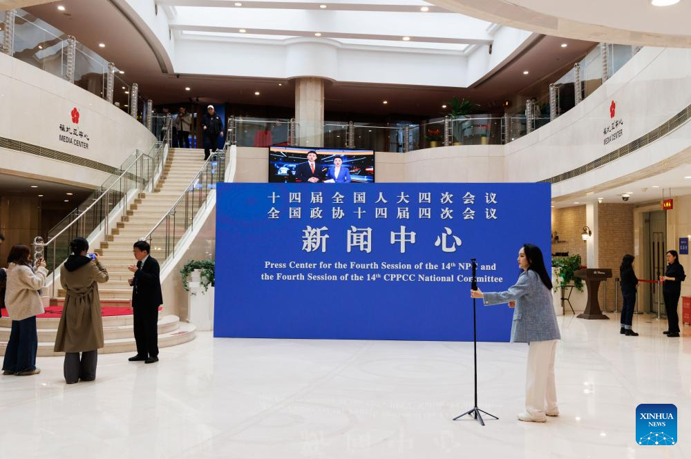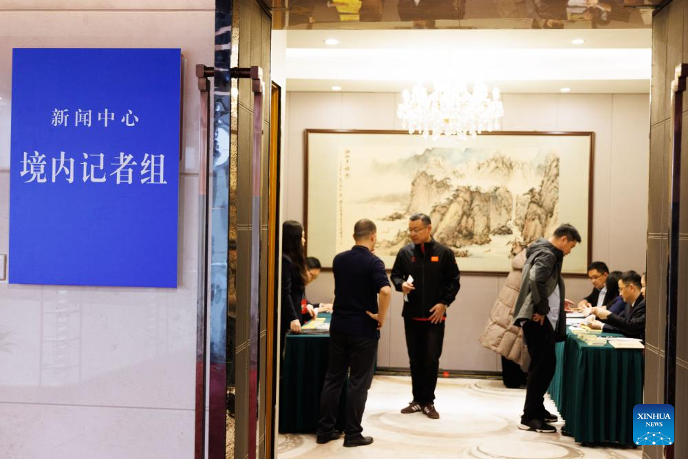 BEIJING, Feb. 27 (Xinhua) -- A press center for China's annual sessions of its top legislature and political advisory body, known as the "two sessions," opened on Friday at the Media Center Hotel in Beijing.