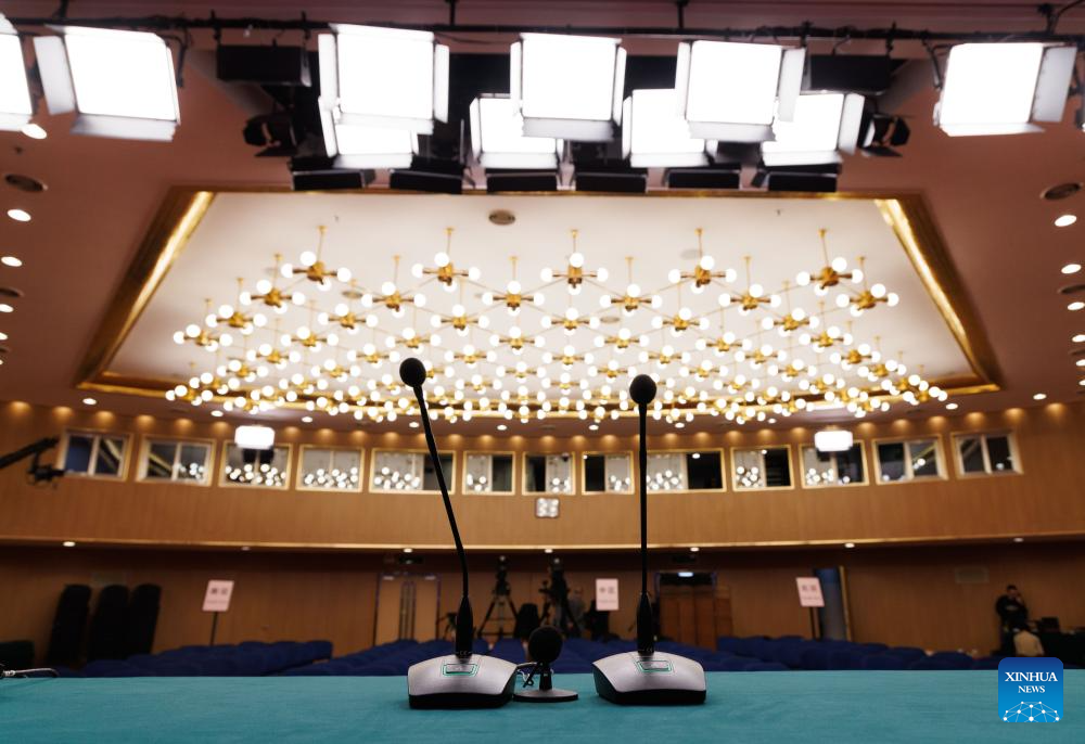 This photo taken on Feb. 27, 2026 shows a view of a press center for China's annual "two sessions" in Beijing, capital of China. A press center for China's annual sessions of its top legislature and political advisory body, known as the "two sessions," opened on Friday at the Media Center Hotel in Beijing. (Xinhua/Jin Liwang)