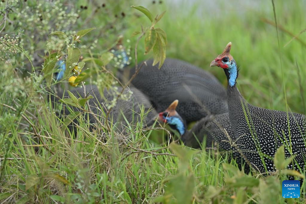 This photo taken on Feb. 26, 2026 shows guinea fowls at the Nairobi National Park in Nairobi, capital of Kenya.