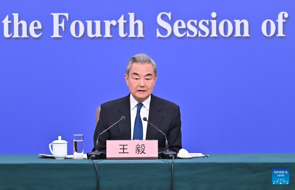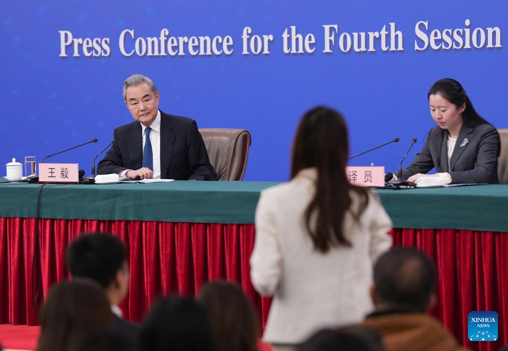 Chinese Foreign Minister Wang Yi, also a member of the Political Bureau of the Communist Party of China Central Committee, attends a press conference on China's foreign policy and external relations on the sidelines of the fourth session of the 14th National People's Congress (NPC) in Beijing, capital of China, March 8, 2026. (Xinhua/Wang Xi)