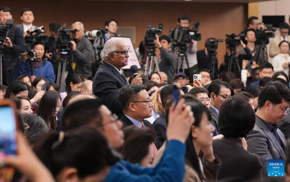 A journalist asks a question at a press conference attended by Chinese Foreign Minister Wang Yi on the sidelines of the fourth session of the 14th National People's Congress (NPC) in Beijing, capital of China, March 8, 2026. Wang, also a member of the Political Bureau of the Communist Party of China Central Committee, answered questions of journalists from home and abroad on China's foreign policy and external relations during the press conference on Sunday. (Xinhua/Wang Xi)