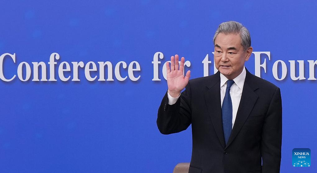 Chinese Foreign Minister Wang Yi, also a member of the Political Bureau of the Communist Party of China Central Committee, waves after a press conference on China's foreign policy and external relations on the sidelines of the fourth session of the 14th National People's Congress (NPC) in Beijing, capital of China, March 8, 2026. (Xinhua/Wang Xi)