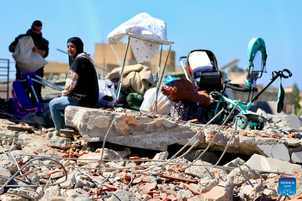 People search for their belongings among the wreckage of a residential building destroyed in Israeli airstrikes near Sidon, southern Lebanon, March 17, 2026. (Photo by Ali Hashisho/Xinhua)
