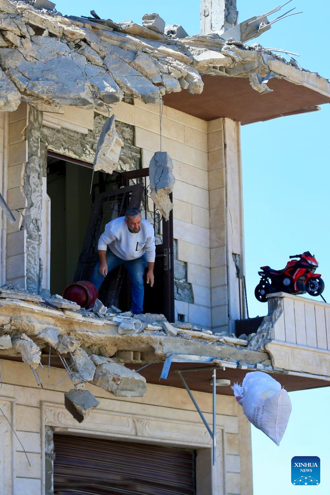 A man searches for his belongings among the wreckage of a residential building destroyed in Israeli airstrikes near Sidon, southern Lebanon, March 17, 2026. (Photo by Ali Hashisho/Xinhua)