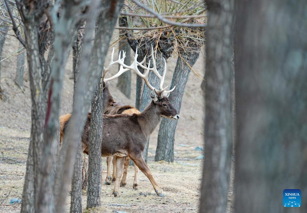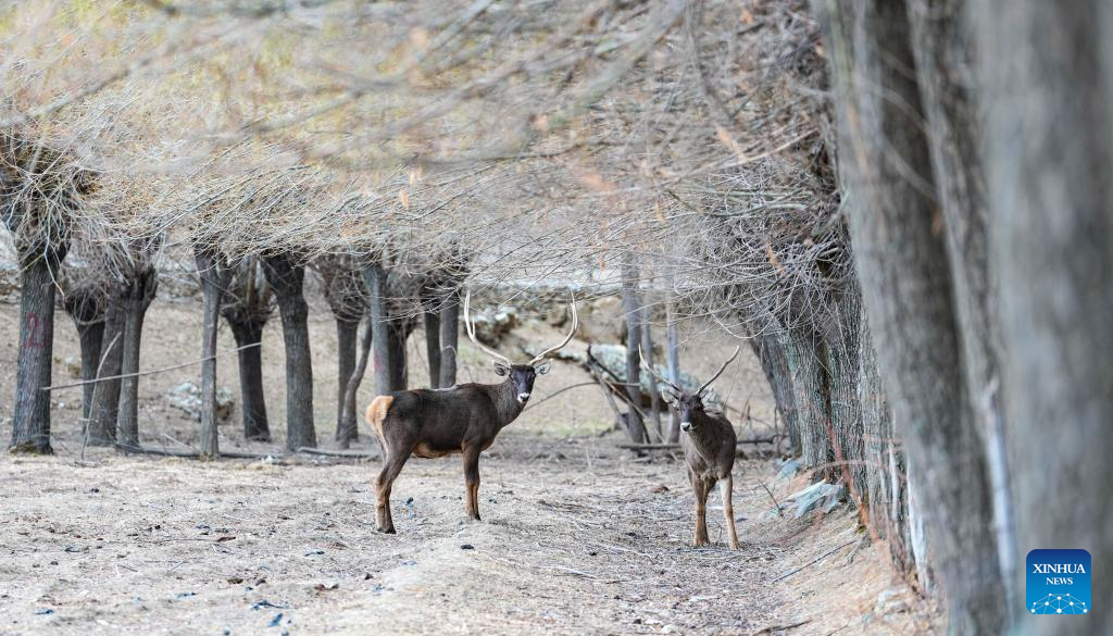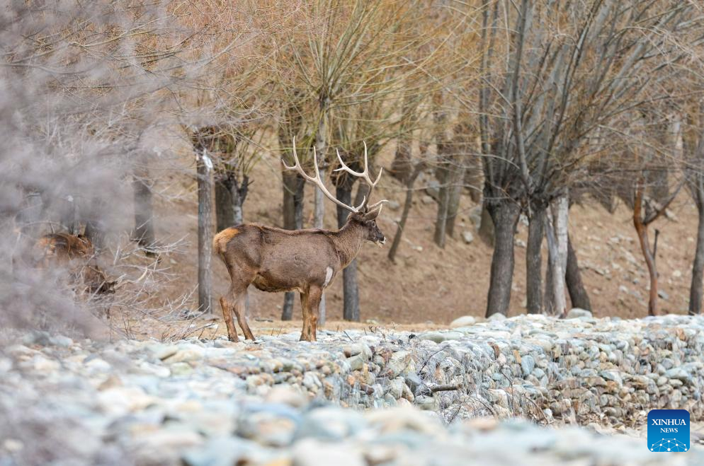 A white-lipped deer, a national first-class protected species, is pictured in Gaiba Village of Nedong District in Shannan City, southwest China's Xizang Autonomous Region, March 15, 2026. The population of white-lipped deer has gradually increased with the continuous improvement of the local ecological environment and strengthened biodiversity conservation efforts, serving as a vivid example of ecological development on the plateau. (Xinhua/Jigme Dorje)