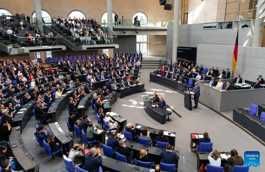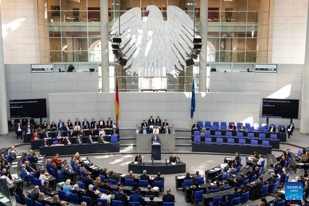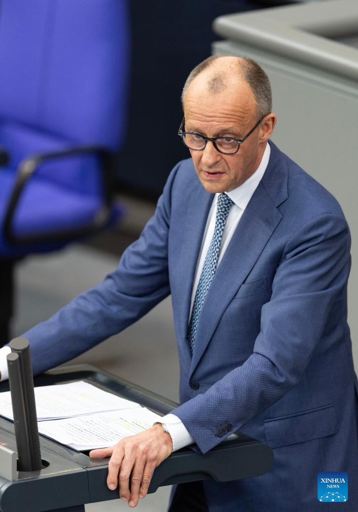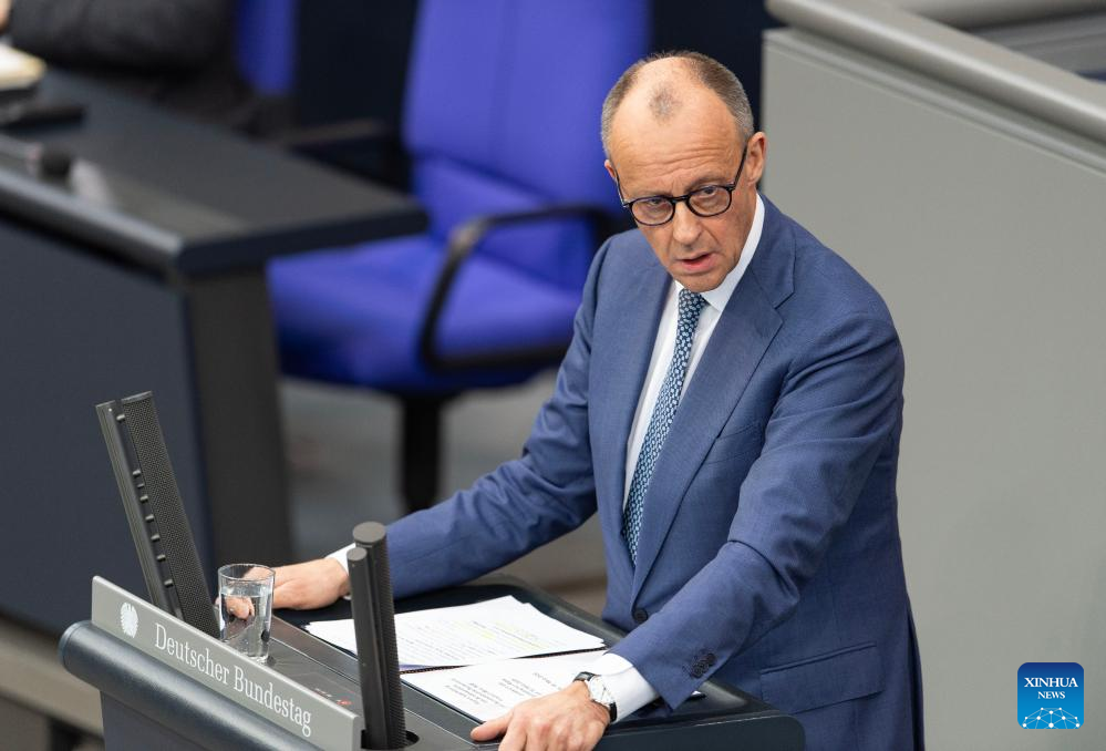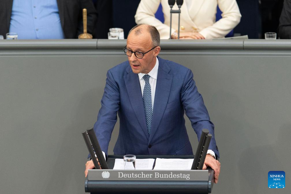 German Chancellor Friedrich Merz delivers a speech to the Bundestag, the lower house of the German parliament, in Berlin, Germany, March 18, 2026. (Xinhua/Zhang Haofu)