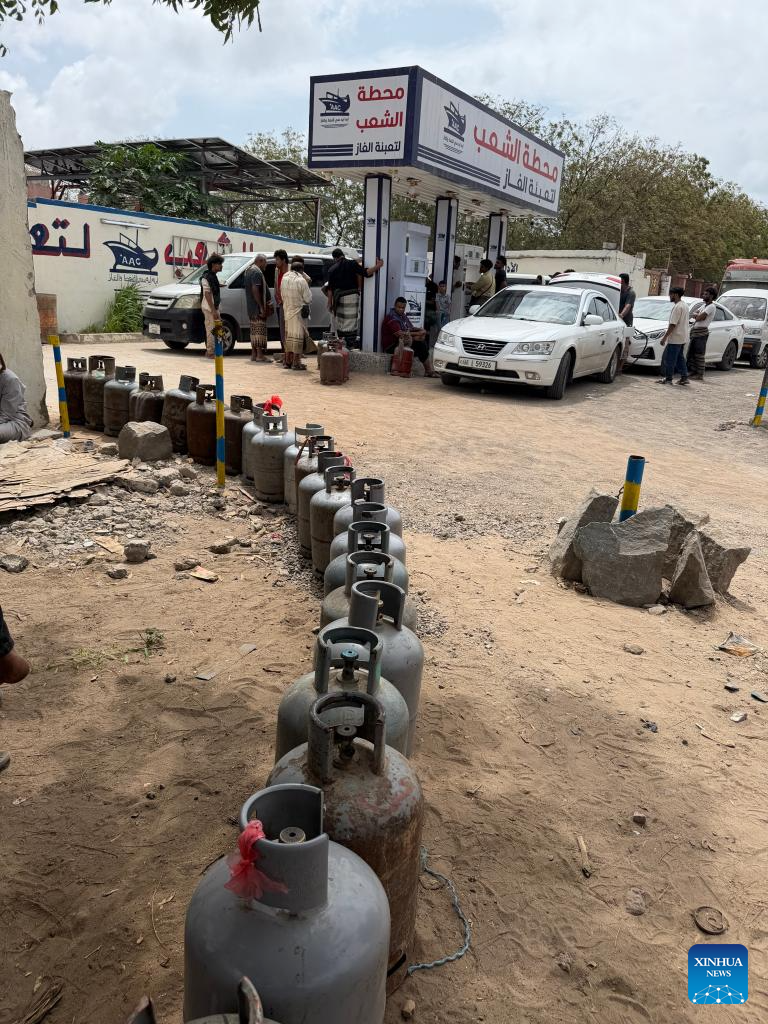 Photo taken by cellphone shows vehicles and residents queuing at a gas filling station as shortages persist in the southern port city of Aden, Yemen, March 24, 2026. A fresh rise in prices of essential goods and services is deepening economic hardship in war-ravaged Yemen, as households face mounting costs stemming from supply disruptions, higher import expenses and recent policy adjustments affecting key commodities. (Photo by Murad/Xinhua)