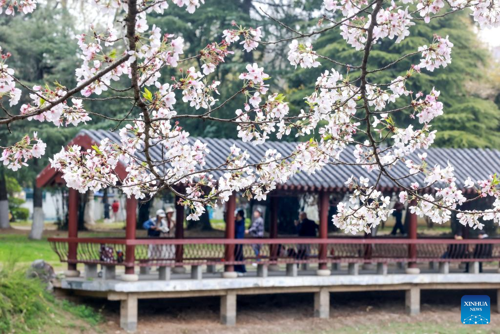 Cherry blossoms are seen at a park in Huai'an City, east China's Jiangsu Province, March 28, 2026. (Photo by Zhang Jian/Xinhua)