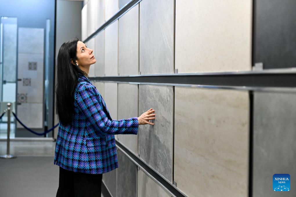 A woman visits the 31st International Construction and Interior Design Exhibition (MosBuild 2026) at Crocus Expo International Exhibition Center in Moscow, Russia, March 31, 2026.