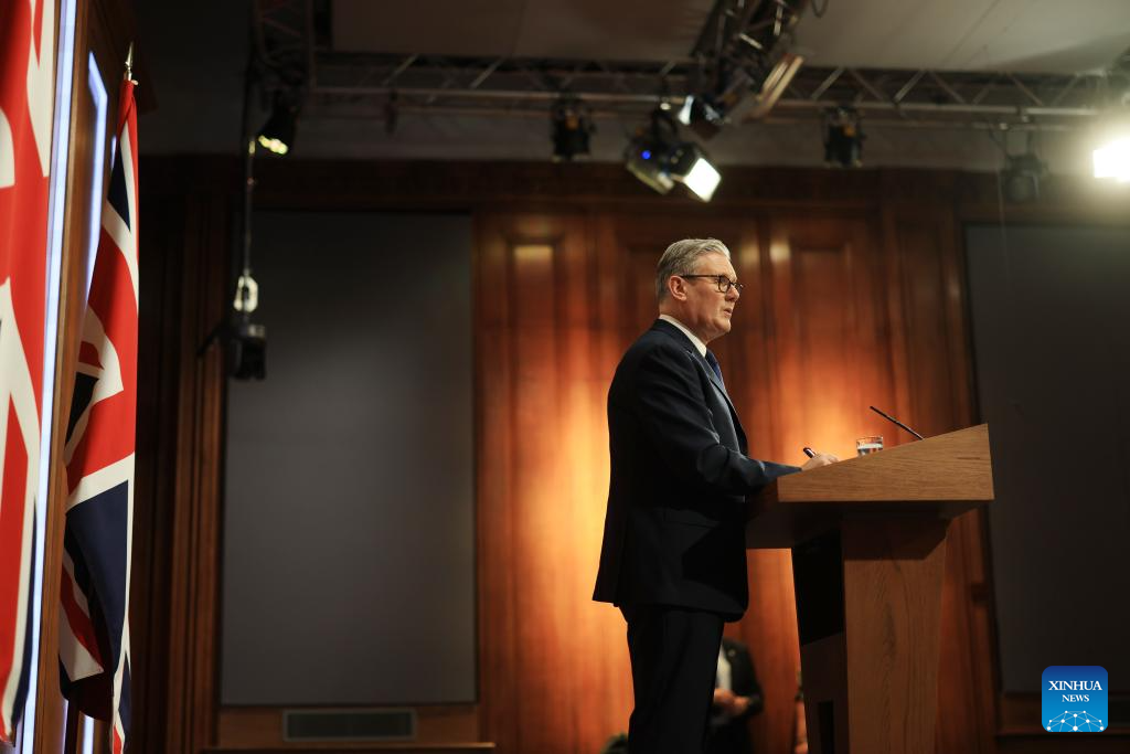Speaking at a morning press conference, Starmer said Foreign Secretary Yvette Cooper would host the meeting of international leaders as part of efforts to address the growing economic impact of the conflict in the Middle East. (Simon Dawson/No. 10 Downing Street/Handout via Xinhua)