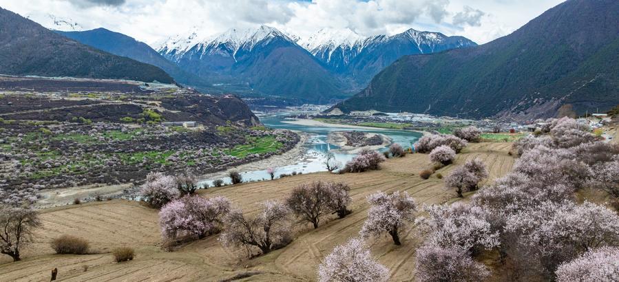 NYINGCHI, April 8 (Xinhua) -- Peach blossoms are now in full bloom in the city of Nyingchi, drawing flocks of visitors here for its vibrant festival.