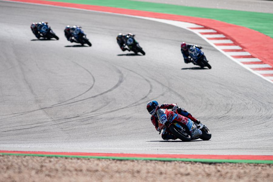 French rider Valentin Debise (front) riding a ZXMOTO motorcycle competes in the World Supersport (WorldSSP) category at the Portuguese round of the Superbike World Championship (WSBK) at the Portimao Circuit in Portugal, on March 28, 2026. (Xinhua)