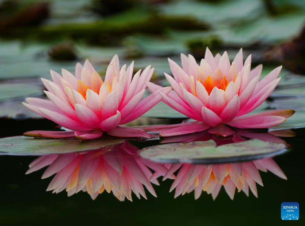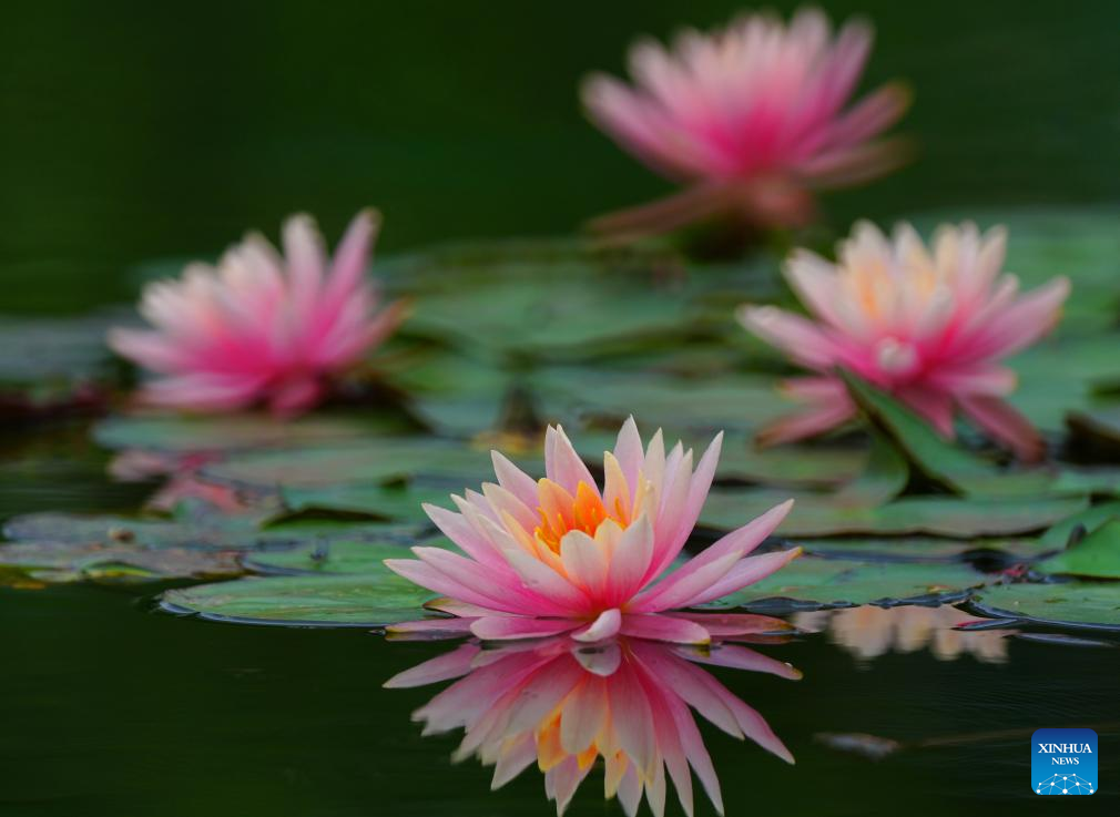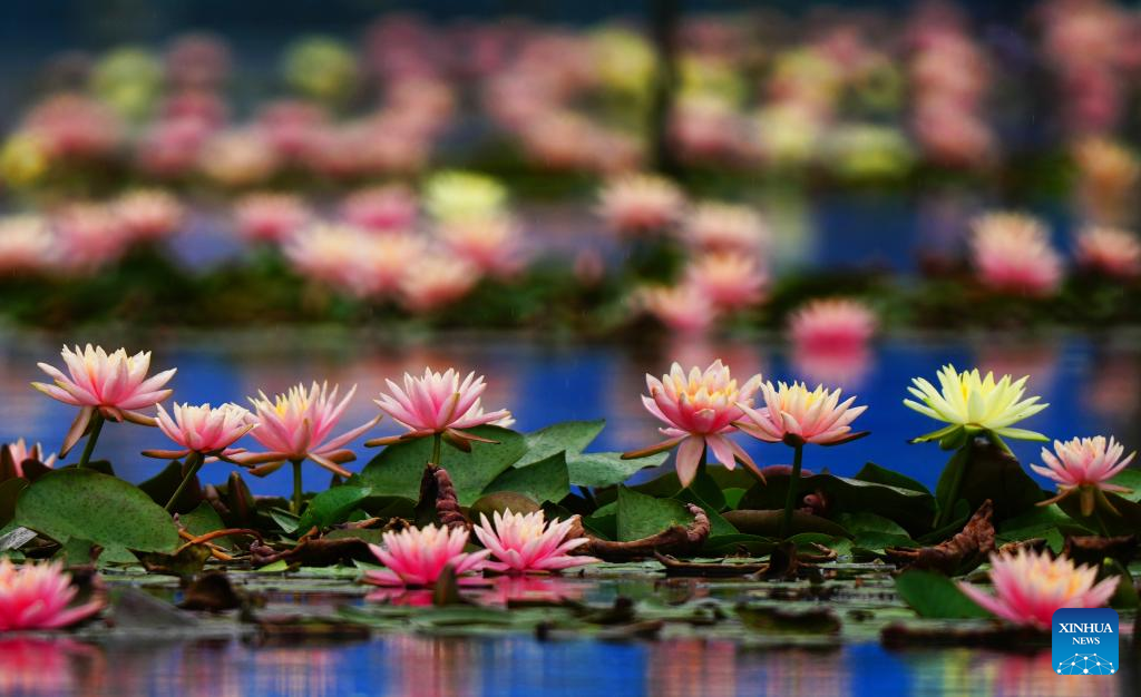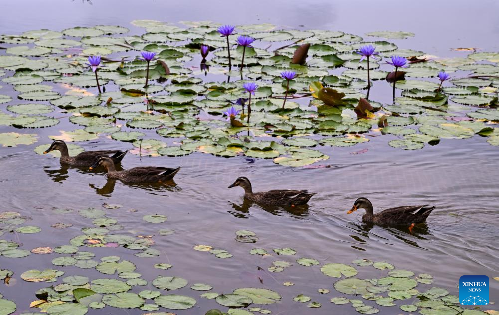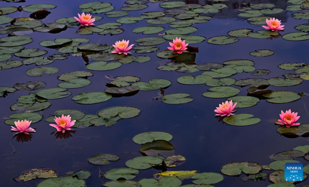This photo taken on April 27, 2026 shows water lilies at Nanhu park in Nanning City, south China's Guangxi Zhuang Autonomous Region. (Photo by Miao Yucai/Xinhua)